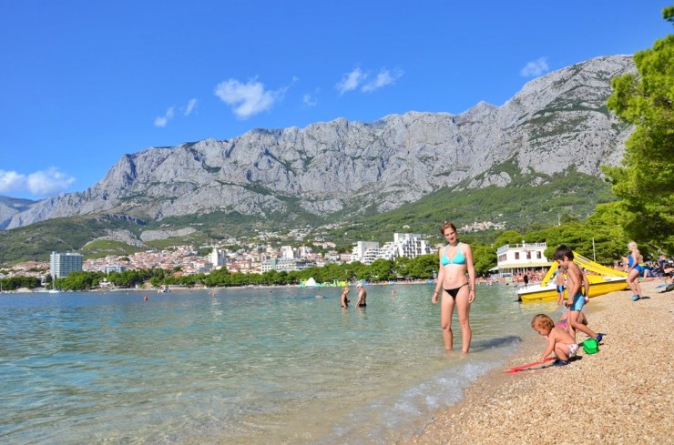 - 32. Makarska – Plaja, deşi cu pietre, e foarte frumoasă. Ne-a plăcut că sunt copaci, iar stâncile din spate dau un farmec aparte.