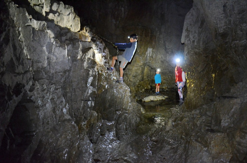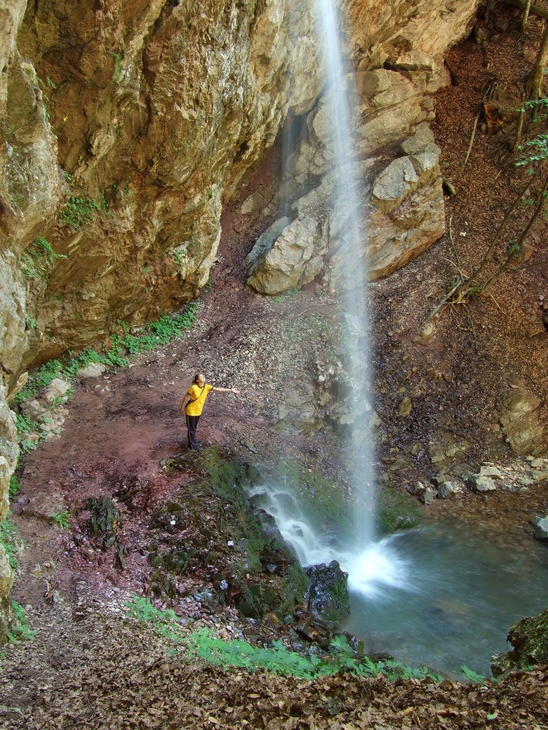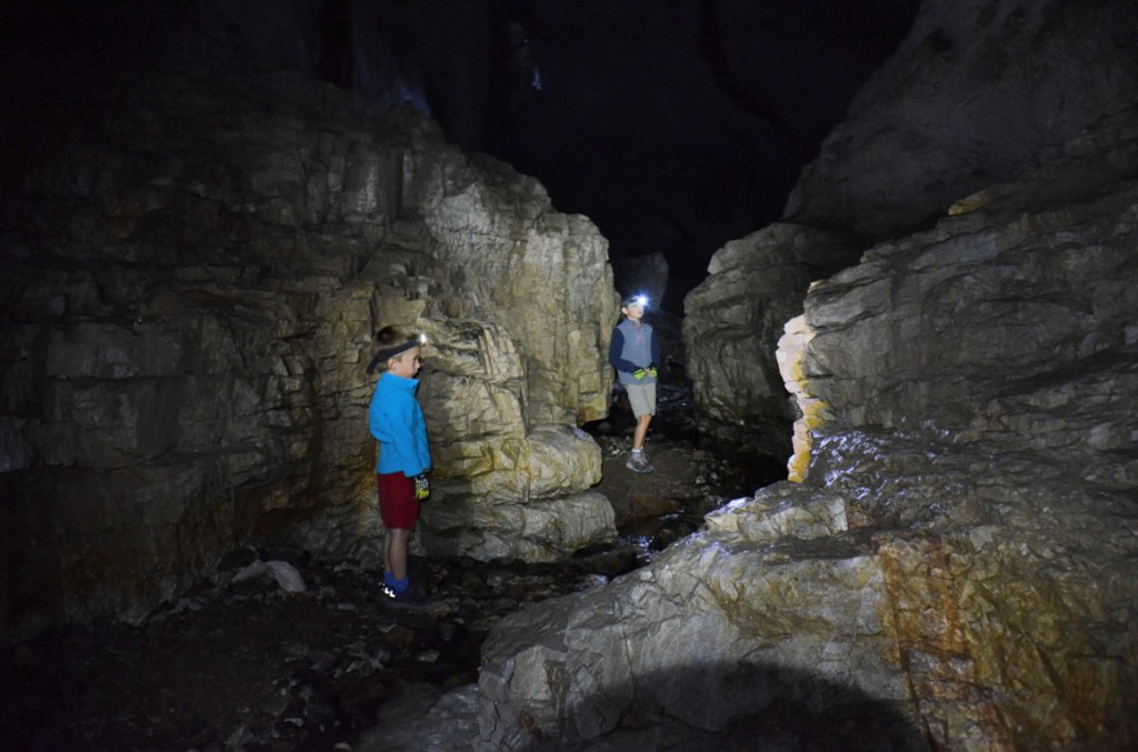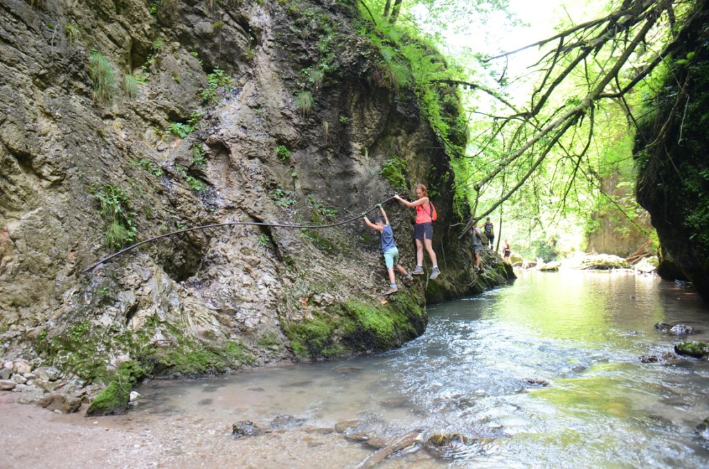 Peştera nu e lungă, are cam 260 m, iar din interior se vede lumina prin „gemuleţele” din tavanul peşterii. Aveţi nevoie totuşi de o sursă de lumină, de preferat frontală, pentru că mâinile vă vor fi ocupate cu cablurile. La ieşirea din peşteră e şi un canion spectaculos, foarte îngust. Atenţie, traseul poate da dependenţă 😀