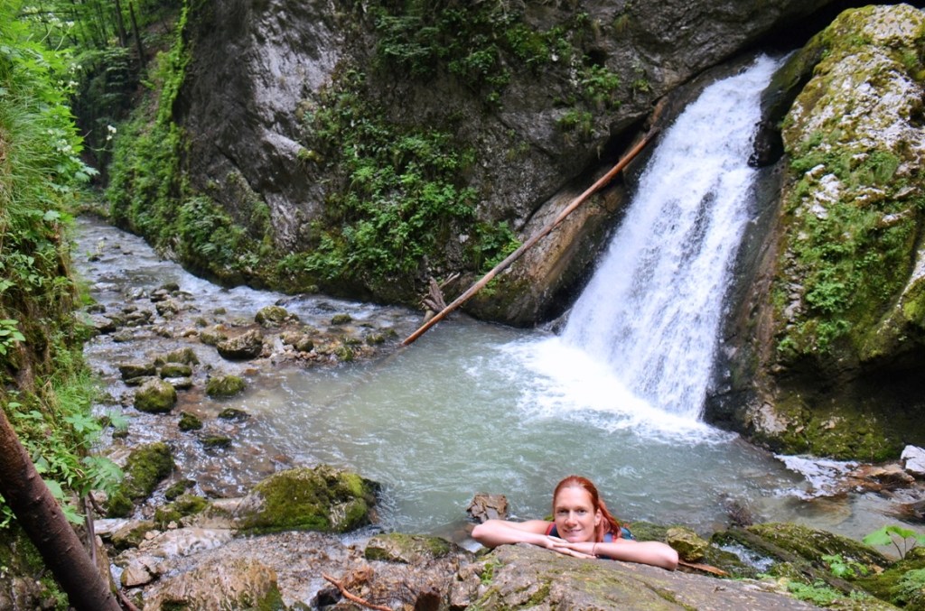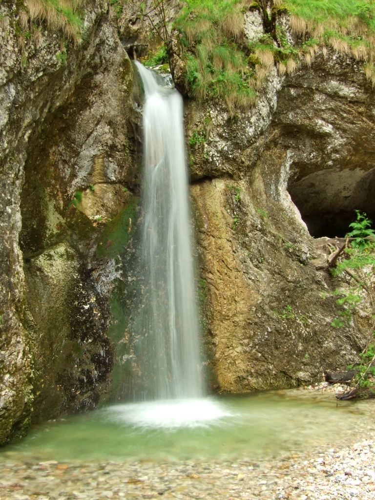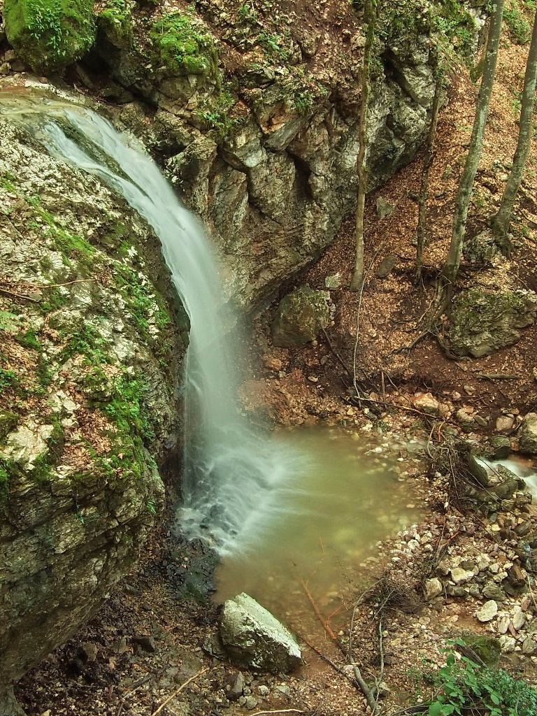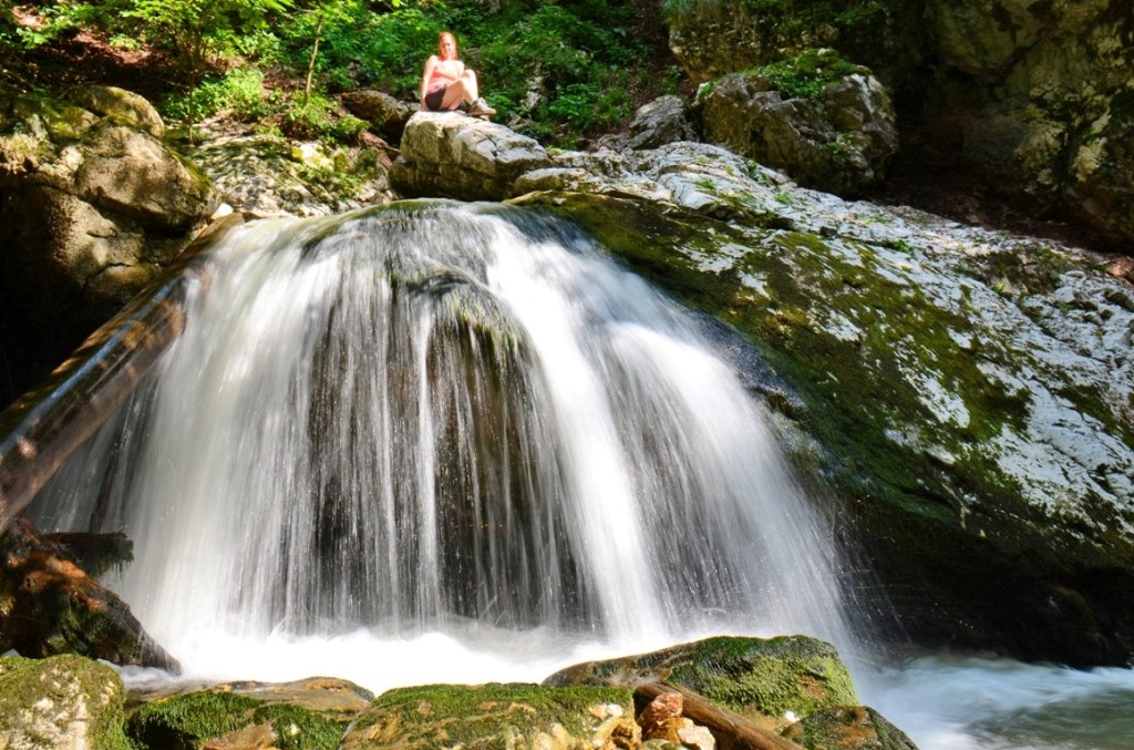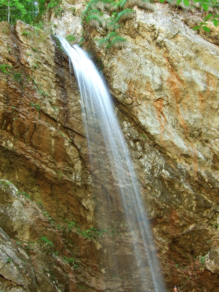 La cascada Evantai se poate trece şi prin apă dacă nivelul e mic şi dacă nu vreţi să vă cocoţaţi pe pereţi 🙂 După cascadă traseul devine mai uşor, mai este o porţiune cu lanţ, dar lejeră comparativ cu cele de dinainte.