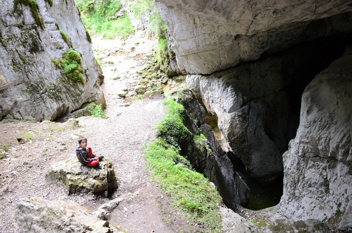 ATENŢIE ! Intrarea în peşteră din Dolina 3 nu face parte din circuit şi nu se recomandă traversarea peşterii. Noi am coborât doar puţin, până la apă, pentru o poză faină 😀