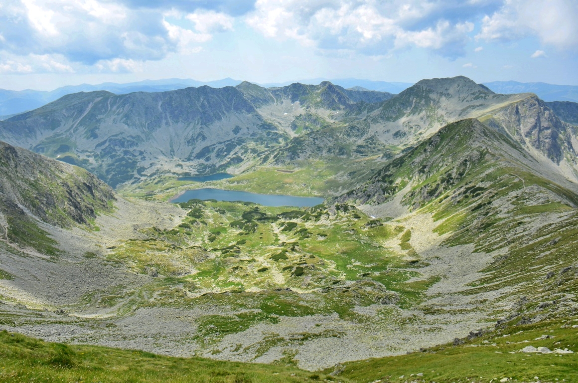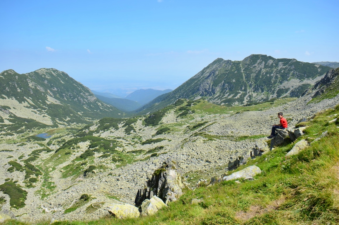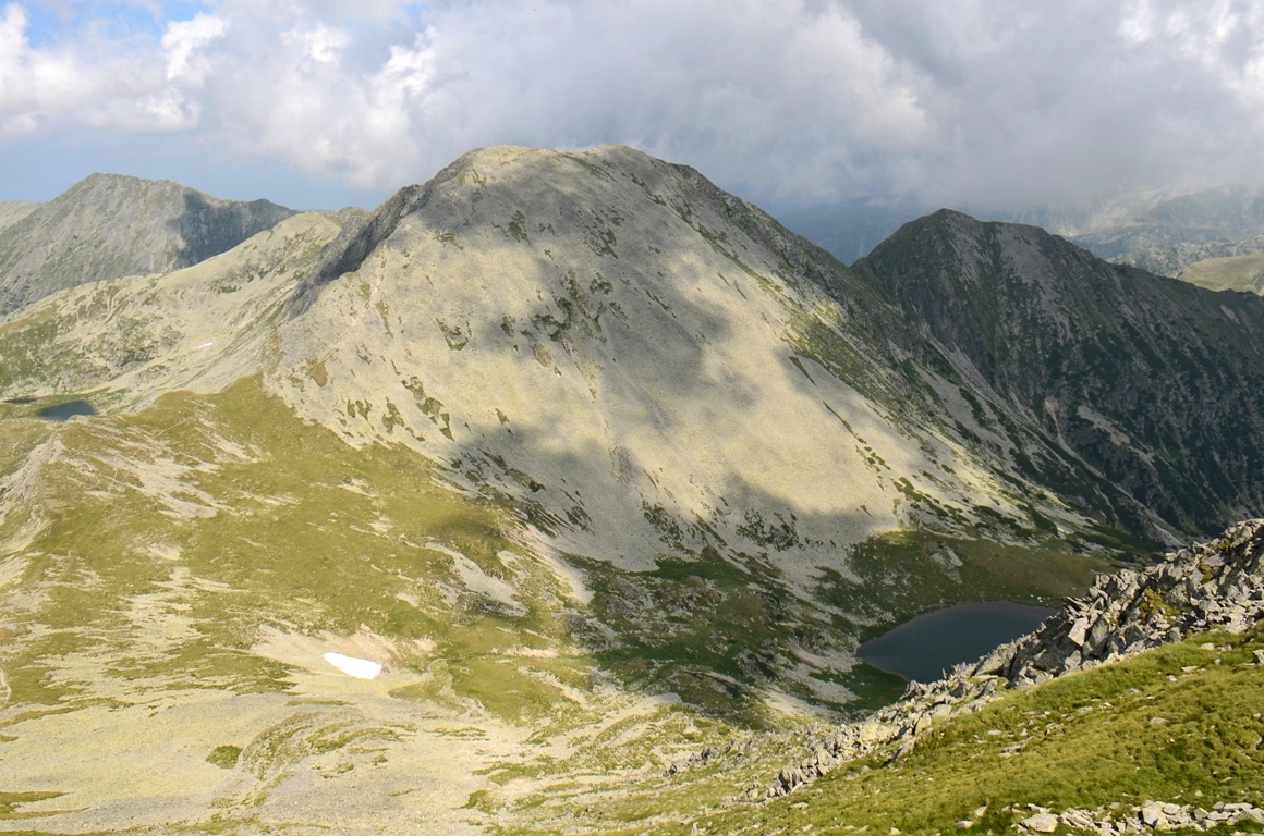 Ajunşi sus în şa, ni s-au deschis zările până departe şi am putut să le arătăm copiilor celelalte vârfuri mari, Bucura şi Retezat, rezervaţia Gemenele şi căldarea Zănoagei, spre care vom merge cu altă ocazie 🙂 Norii s-au tot jucat, ba acoperind, ba descoperind soarele, aşa că am avut spectacol la poze. După o pauză destul de lungă, am pornit iar spre corturi, cu mai mare atenţie decât la urcare, că doar ştiţi că e mai greu să cobori decât să urci 🙂