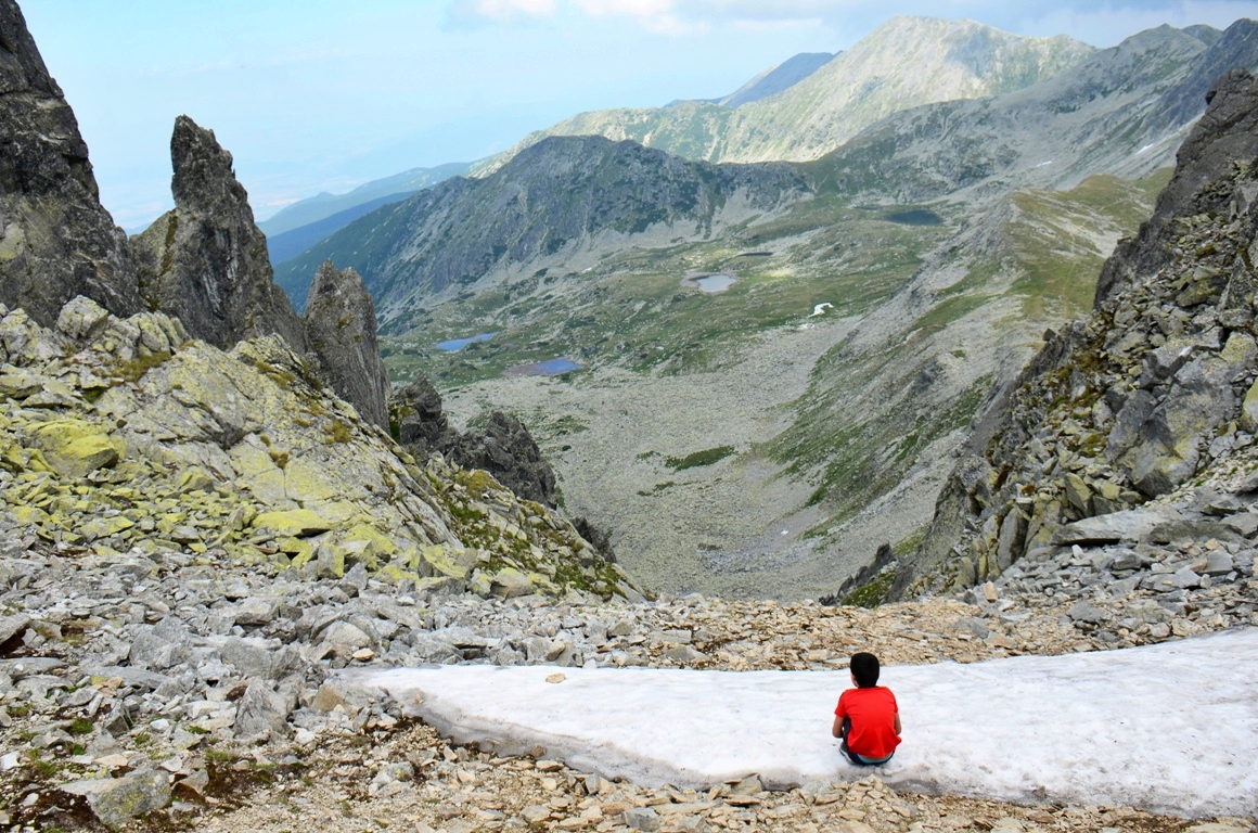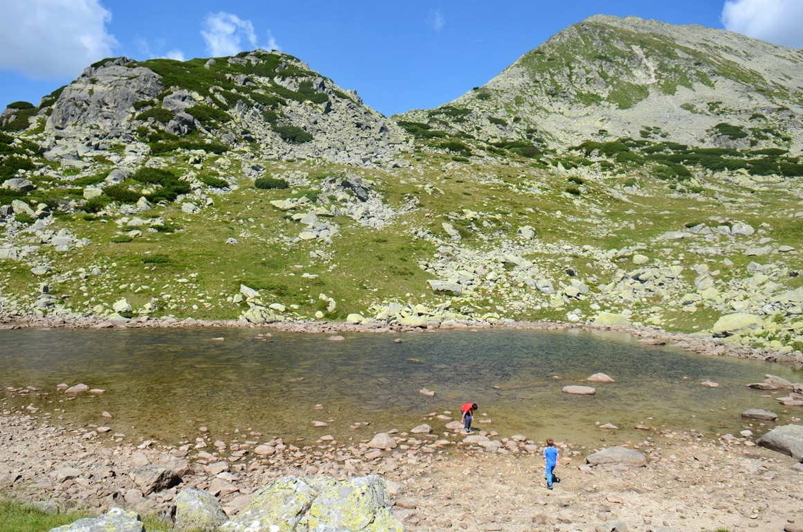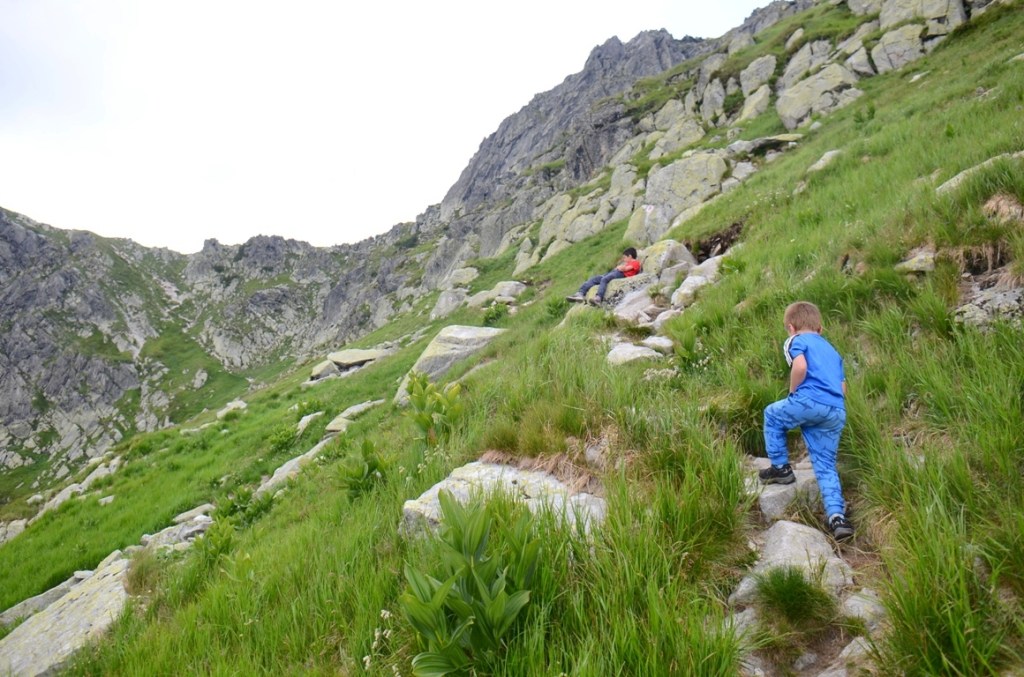 A fost o zi puţin mai relaxantă, deşi traseul nu e deloc printre cele mai uşoare din Retezat. Dar cunoscând traseul şi experienţa copiilor, am decis că merită. Porţiunea până la Tăul Porţii e uşoară, “joaca” începe abia de la el spre Tăul Agăţat. Evident că am fost lângă Mihai tot timpul, l-am ţinut de mână unde a fost nevoie şi l-am ajutat să deprindă mersul pe bolovani.