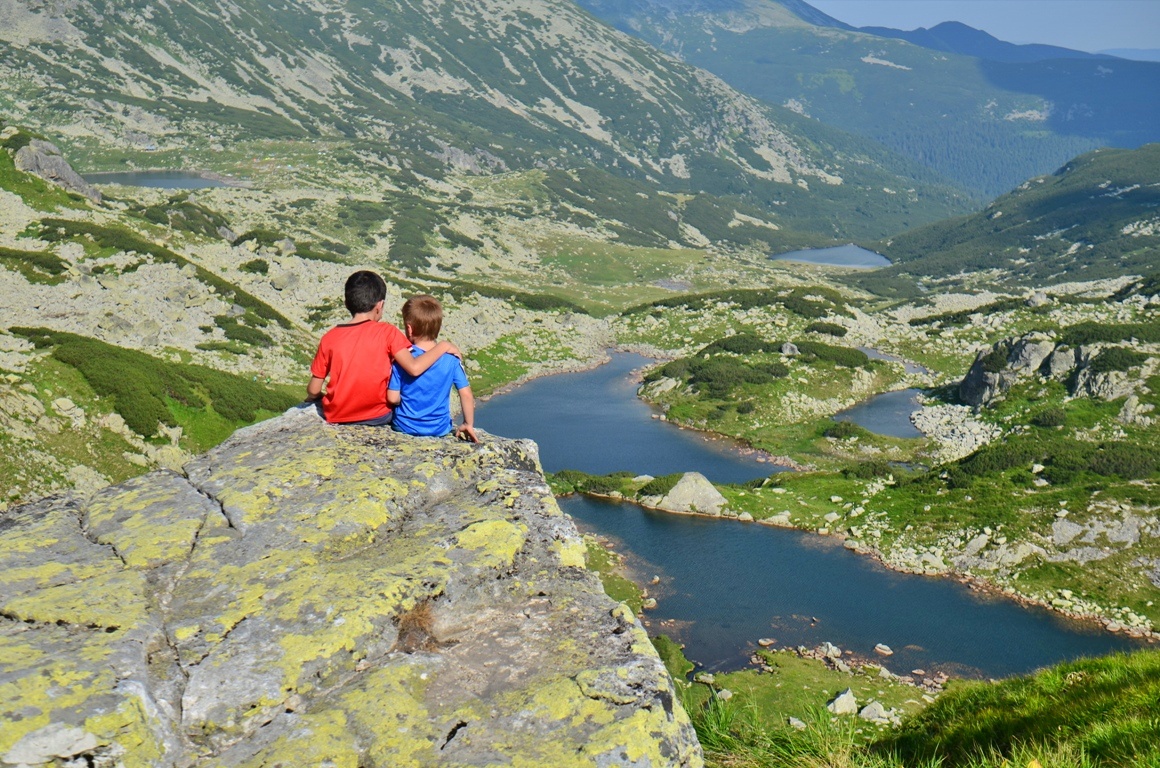 Priveliştea de la 2509 m, de pe cel mai mare vârf din Retezat, i-a captivat şi pe copii, dar şi pe noi deopotrivă. Deşi am mai văzut-o, de fiecare dată simţim acelaşi fior când ajungem aici 😍 Le-am povestit pe unde merge creasta mai departe, spre Păpuşa şi Porţile Închise, şi le-am arătat imensitatea lacului Bucura, care abia de aici se poate percepe.