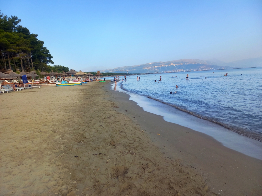 Deși am avut cazare în Vlorë, nu am fost aici la plajă decât în prima seară, când am ajuns și era prea târziu să mergem altundeva. De-asta nici nu prea am poze cu plaja. E o plajă tipică de stațiune, ca în România, cu promenadă și restaurante pe mal, chestii care pe noi nu ne atrag de nicio culoare. 😀 Dar prețurile aici sunt foarte bune, cele mai ieftine din tot litoralul (umblat de noi). Plaja e cu nisip fin și intrare foarte lină în apă. Am mers vreo 50 m și apa nu a urcat mai sus de piept.