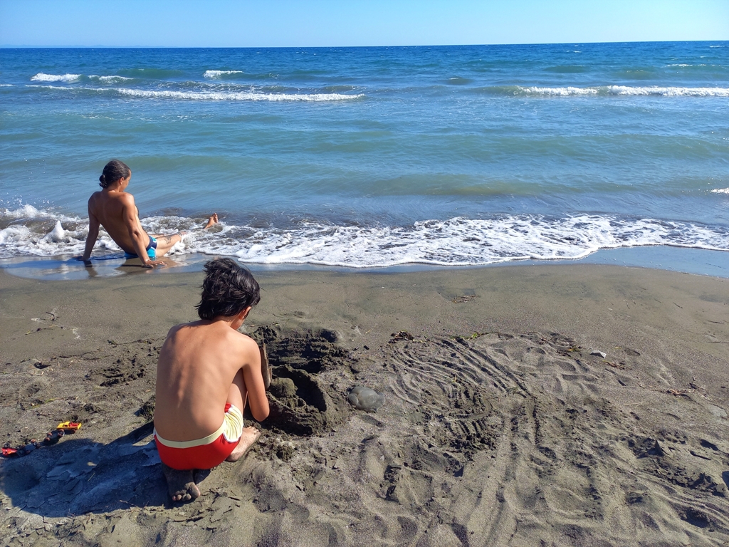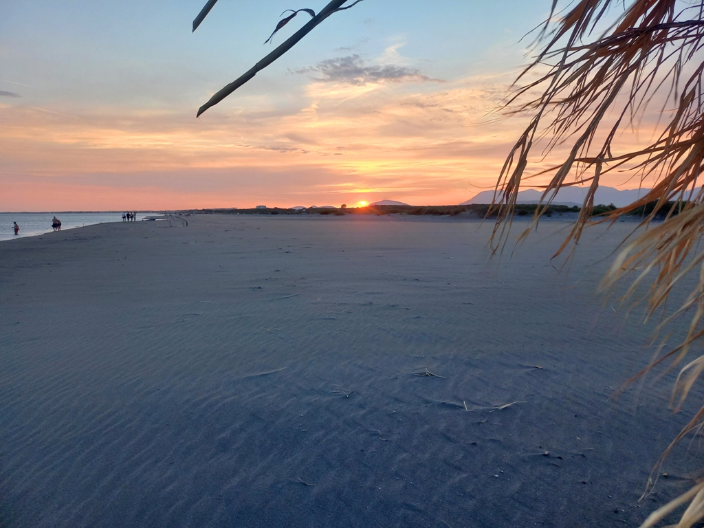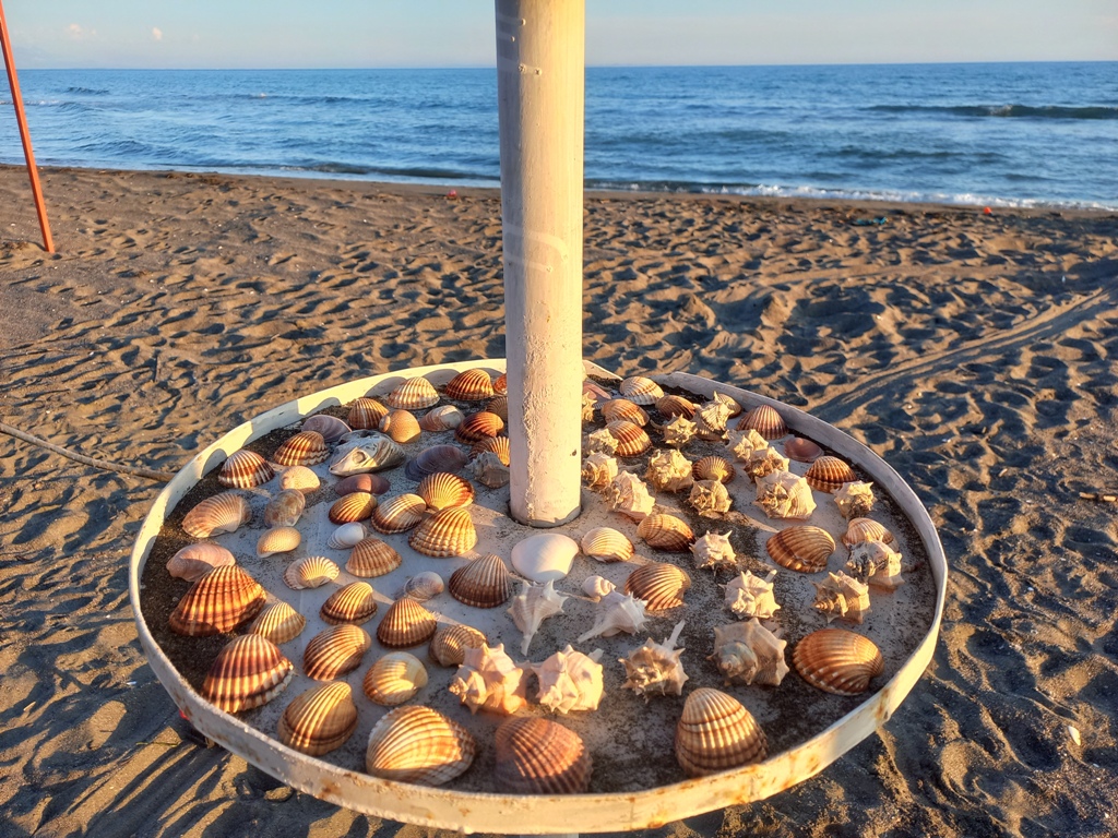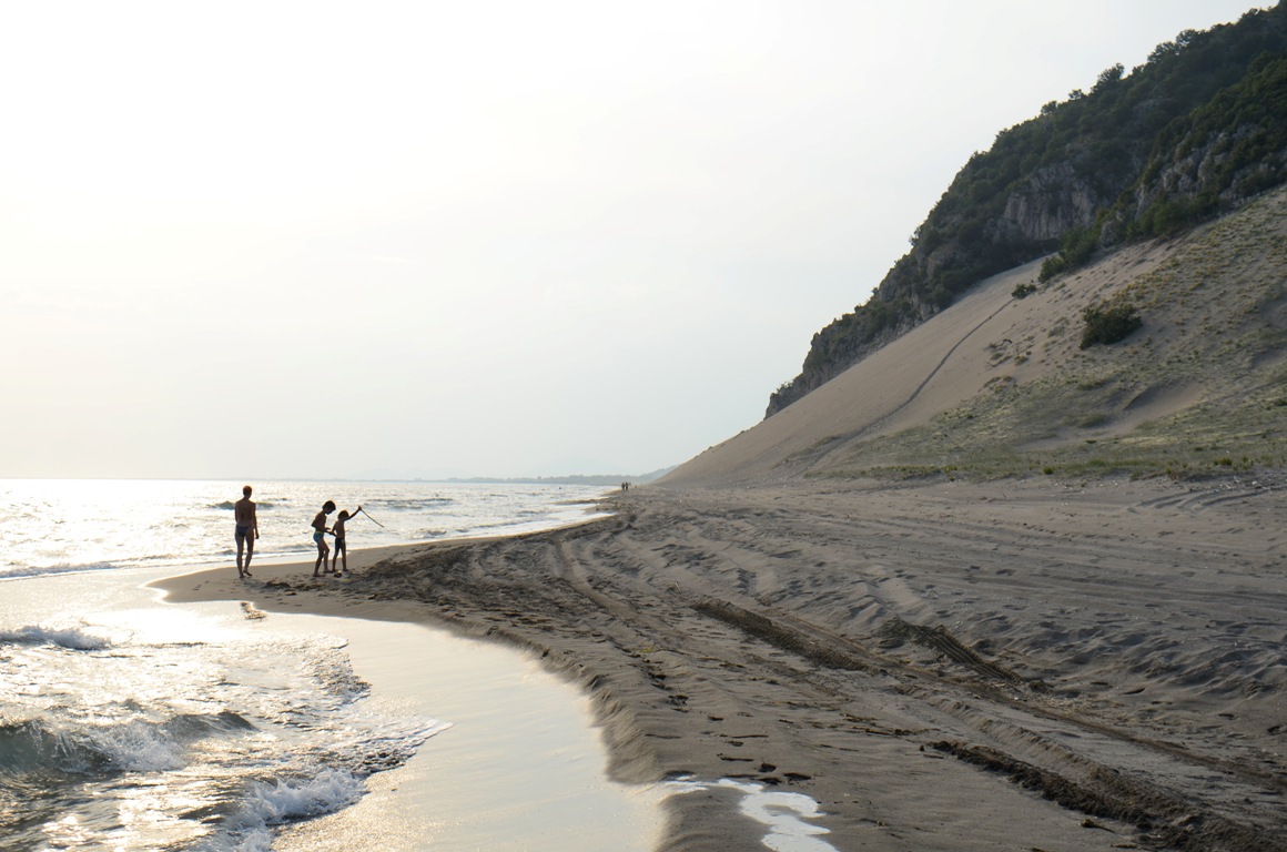 E ultima plajă la care am ajuns, atât de sălbatică, încât nici nu apare pe Maps ca plajă! 😀 E în sătucul Baks-Rrjoll, lângă laguna Viluni, unde am avut ultima cazare. E o plajă foarte lată, cu nisip fin și cu câteva șezlonguri gratuite, care aparțin celor câteva hoteluri din sat. Atât e de sălbatică, încât s-ar putea să fiți vizitați de porcii sătenilor, veniți să caute mâncare. Plaja e goală și întinsă pe kilometri buni. Și de aici se poate merge pe jos la dune. Intrarea în apă e lină, iar pe mal sunt mii de scoici de toate felurile, mărimile și culorile. Ne-am și făcut o colecție uriașă de scoici, cu care vedem ce facem la iarnă 🙂