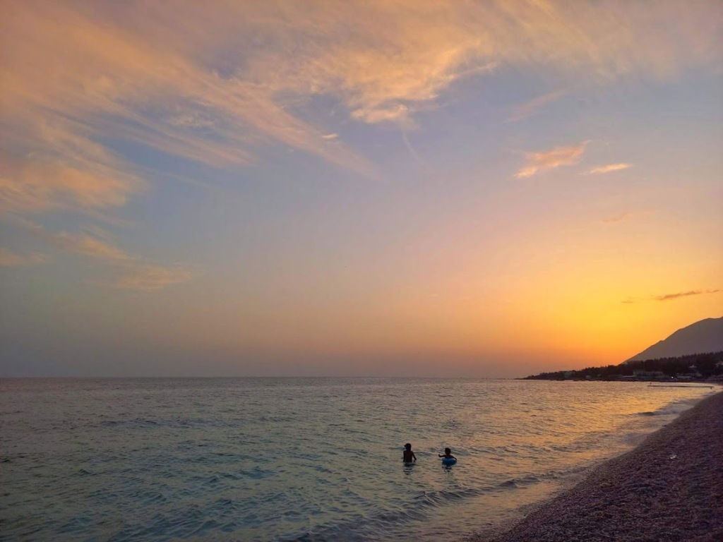 Asta a fost plaja noastră preferată din Albania (înainte să ajungem la Dalan 🏖️ ). Am ajuns la ea din greșeală, când vizitam laguna și parcul Divjaka-Karavasta, în tranzit între două cazări. Era foarte cald afară și am decis să facem o baie înainte să pornim mai departe. Doar că baia asta s-a transformat în mai multe băi și joacă la nisip și în valuri, de am ajuns să plecăm de la plajă la apus. Tipic! 🙂