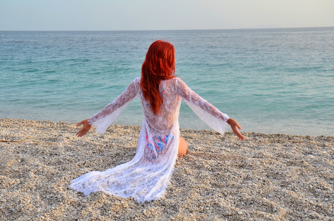 Aici ne-a plăcut 🙂 Poate din cauză că am prins un apus superb, poate din cauza culorii apei, poate din cauza lipsei aglomerației. Plaja e cu pietre, intrarea în apă e abruptă, sunt multe șezlonguri, paturi cu baldachine, dar și loc de prosoape. Dacă veniți aici, țineți cont că orașul e mai sus, pe versant, iar plaja e jos. Dacă vă luați cazare în oraș, va trebui să coborâți cu mașina până la plajă. Noi am găsit loc de parcare chiar lângă plajă, dar am ajuns seara. Ziua cel mai probabil e mai aglomerat.