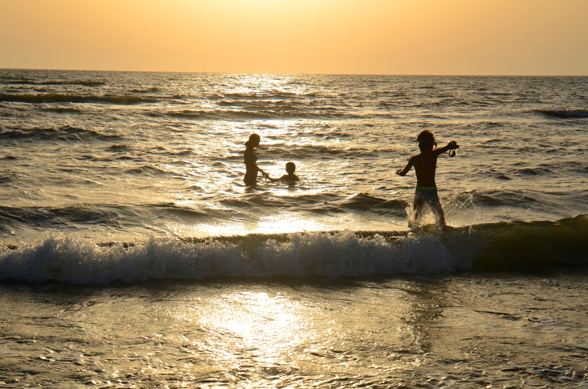 Plaja seamănă cu plajele noastre din Deltă, e foarte lată și întinsă pe kilometri întregi. Nisipul e foarte fin și intrarea în apă e ok. Imediat lângă mal se adâncește puțin, dar apoi scade iar. Noi am prins aici valuri destul de mari, dar și un vânt turbat, care probabil le-a și cauzat.