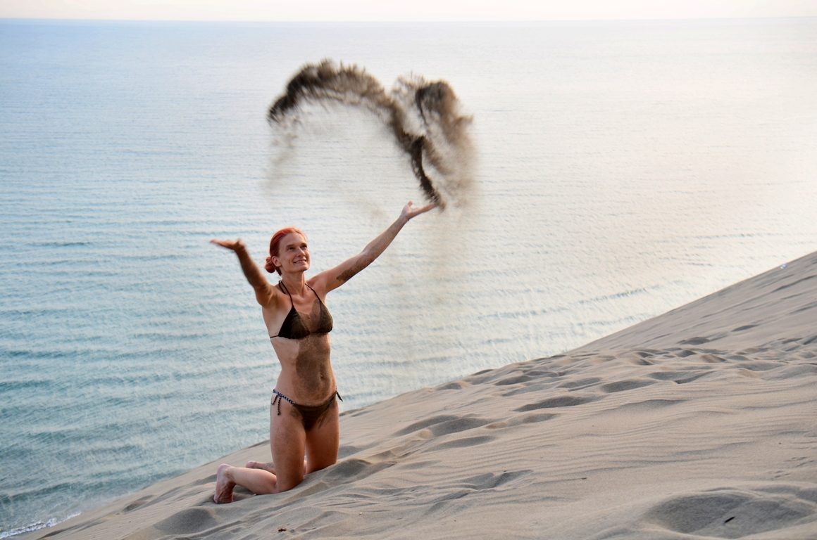 Dar noi nu am stat pe plaja asta, ci ne-am dus să vedem dunele de nisip. Din capătul nordic al plajei se merge pe jos pe malul mării, vreo 20-30 de minute, până la o porțiune unde se înalță o dună uriașă de nisip. E super spectaculoasă și se poate urca până la baza stâncilor.