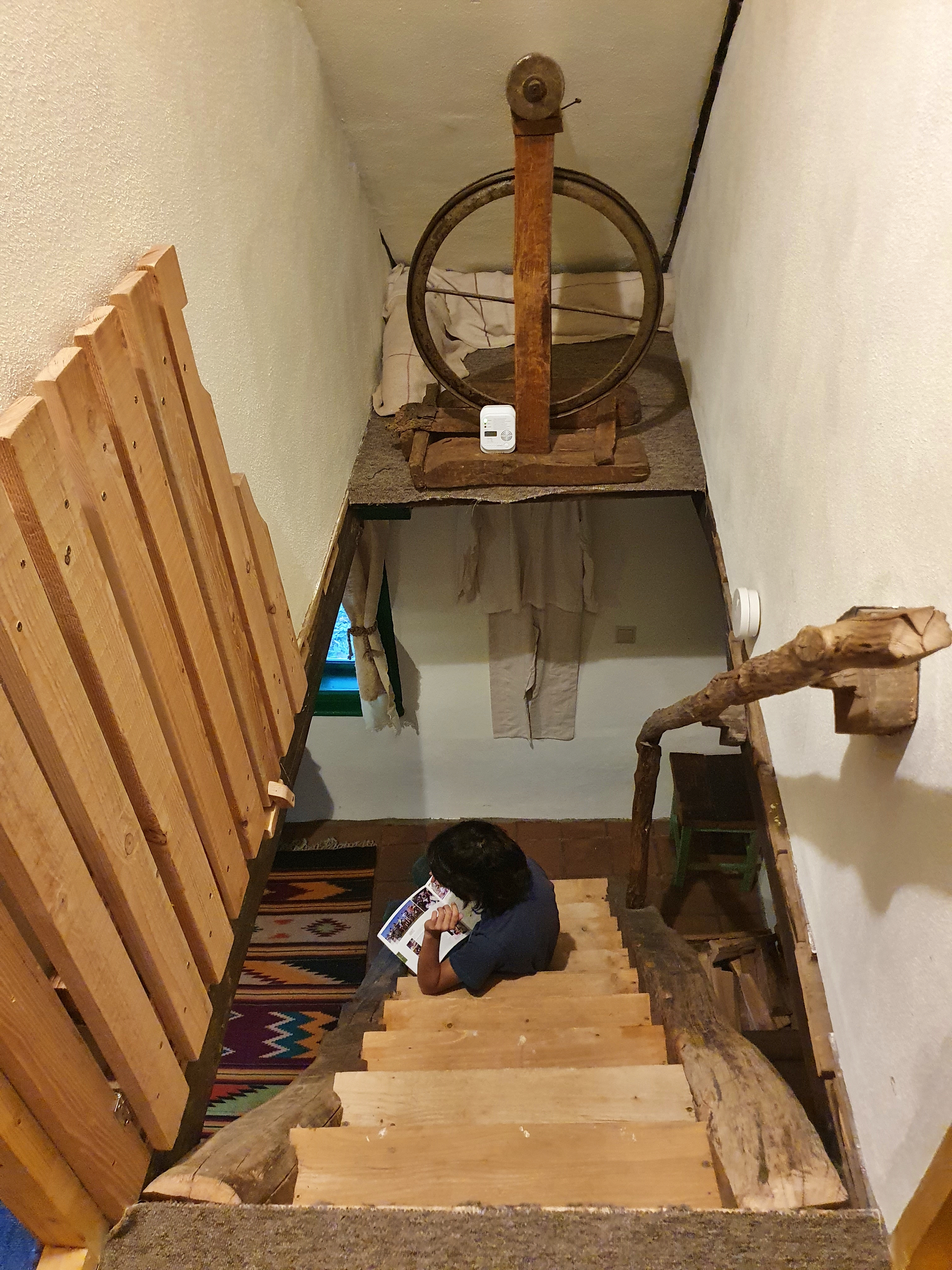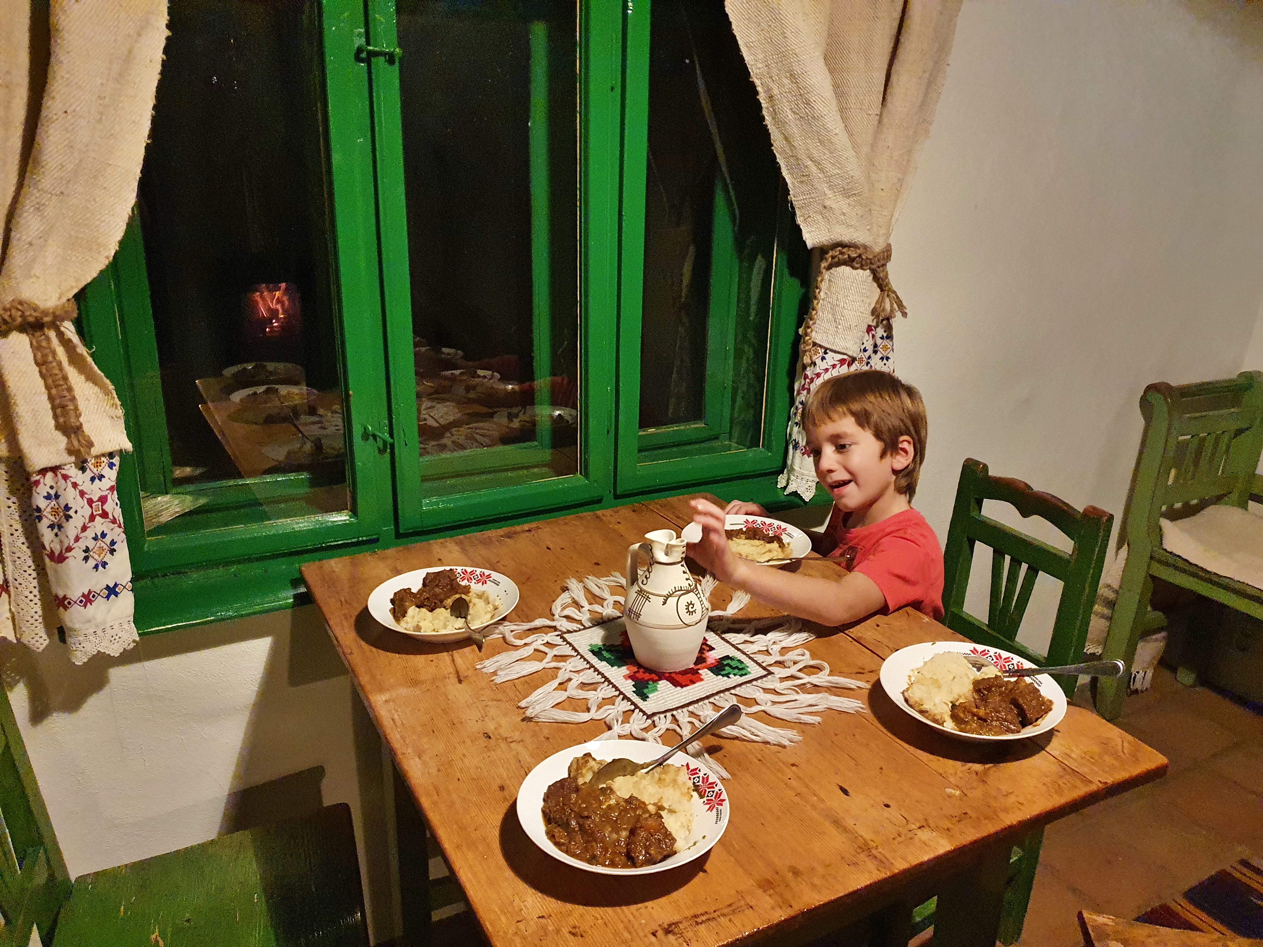 Bucătăria e dotată cu tot ce e nevoie pentru gătit, vase, tacâmuri, frigider, aragaz și mașină de spălat vase. Dar, la cerere, Andreea vă poate oferi, contra cost, și mic dejun și/sau cină. Tot ce gătește și oferă turiștilor e din produse locale, ale lor sau cumpărate de la vecini. Pentru că și ei au grădină de care se ocupă, găini și doi purcei tare simpatici, care vor să fie mângâiați întruna. 😃