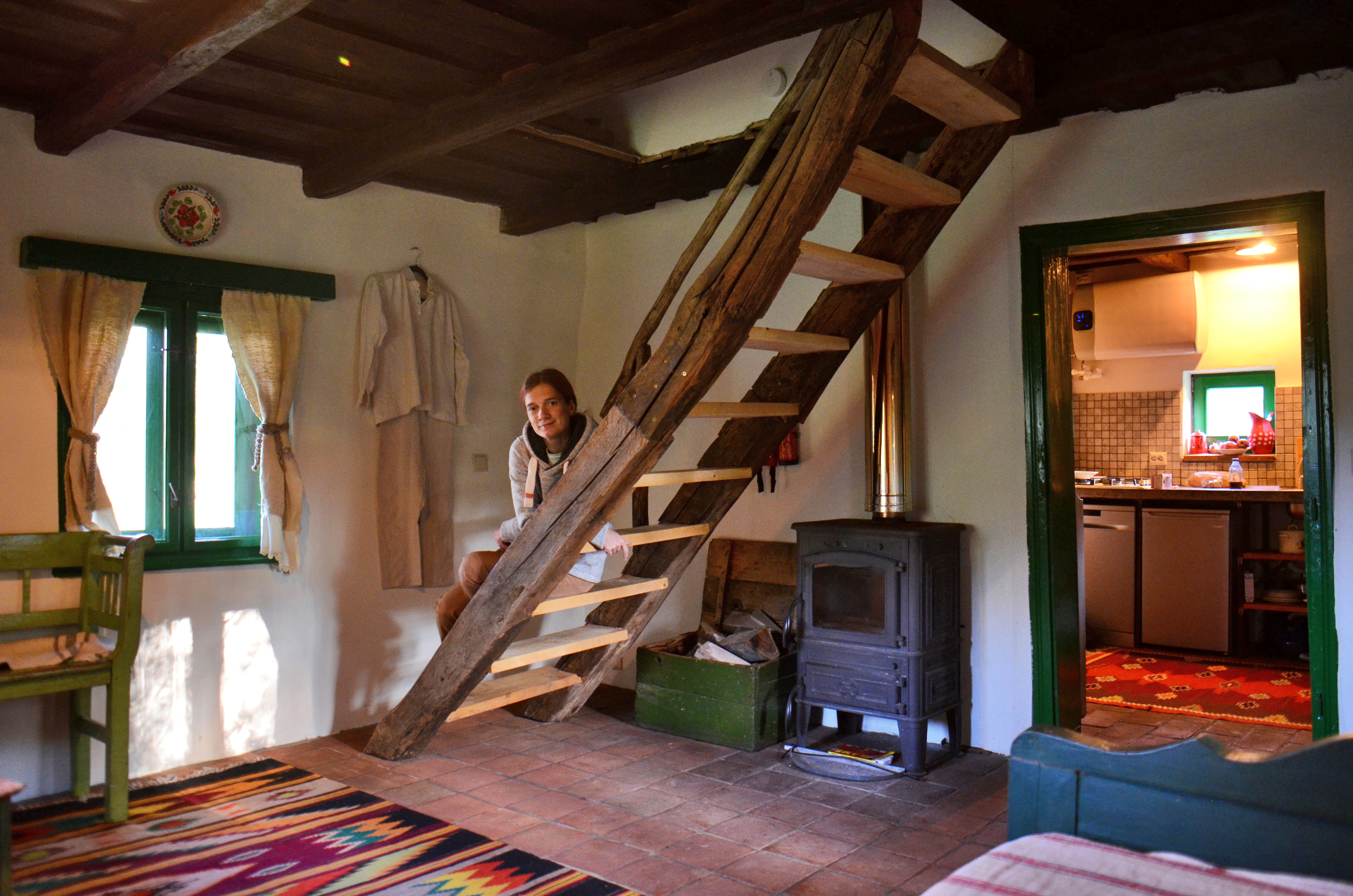 Noi am stat în Casa Marie-José, numită astfel după mama lui Luc. E cea mai veche casă din complex, are peste 100 de ani. A fost restaurată, pe cât posibil, cu vechile materiale, făcută cu foarte mult bun gust și cu motive tradiționale la tot pasul. La parter găsim bucătăria, baia și ”livingul” cu soba și masa, iar la etaj sunt două dormitoare, unul cu pat matrimonial și unul cu două paturi de o persoană. Încap lejer șase persoane, pentru că la parter mai este o canapea extensibilă.