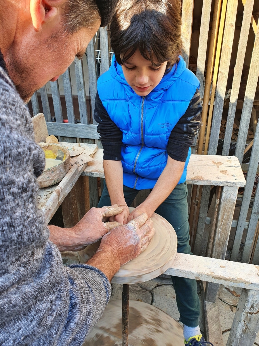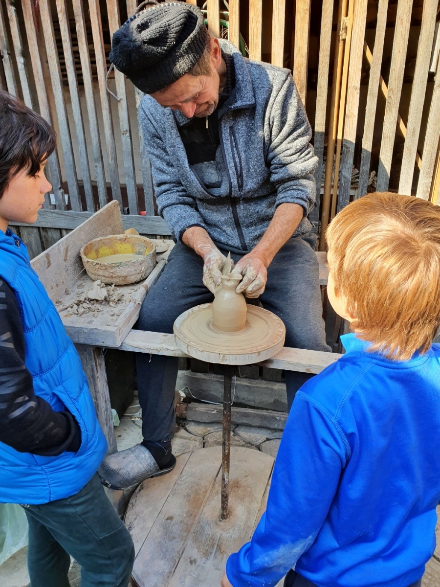Vadu Crișului e singurul loc din țară în care se prelucrează lutul alb și se fac vase din ceramică albă. Am vizitat împreună cu copiii atelierul de ceramică, am aflat de unde provine materia primă, am asistat la o demonstrație, iar apoi au avut și ei ocazia să-și etaleze îndemânarea în modelarea lutului. Cu ajutorul meșterului, au reușit să facă fiecare câte o farfurie, mare bucurie pe ei! 🙂 Găsești detalii și locația atelierului aici, iar pentru vizite și programări o să te rog să-mi trimiți un mesaj, să-ți dau numărul de telefon al doamnei care se ocupă de atelier.