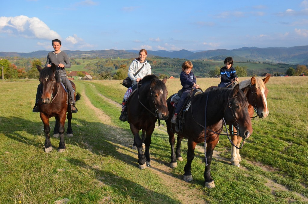 Aici poți face și primii pași în călărie, dar poți parcurge și trasee mai lungi dacă știi deja să călărești. Noi, adulții, am urcat prima dată pe cal la ei și a fost o experiență deosebită. Iar peisajul pe care l-am văzut din șa îți taie răsuflarea 🙂