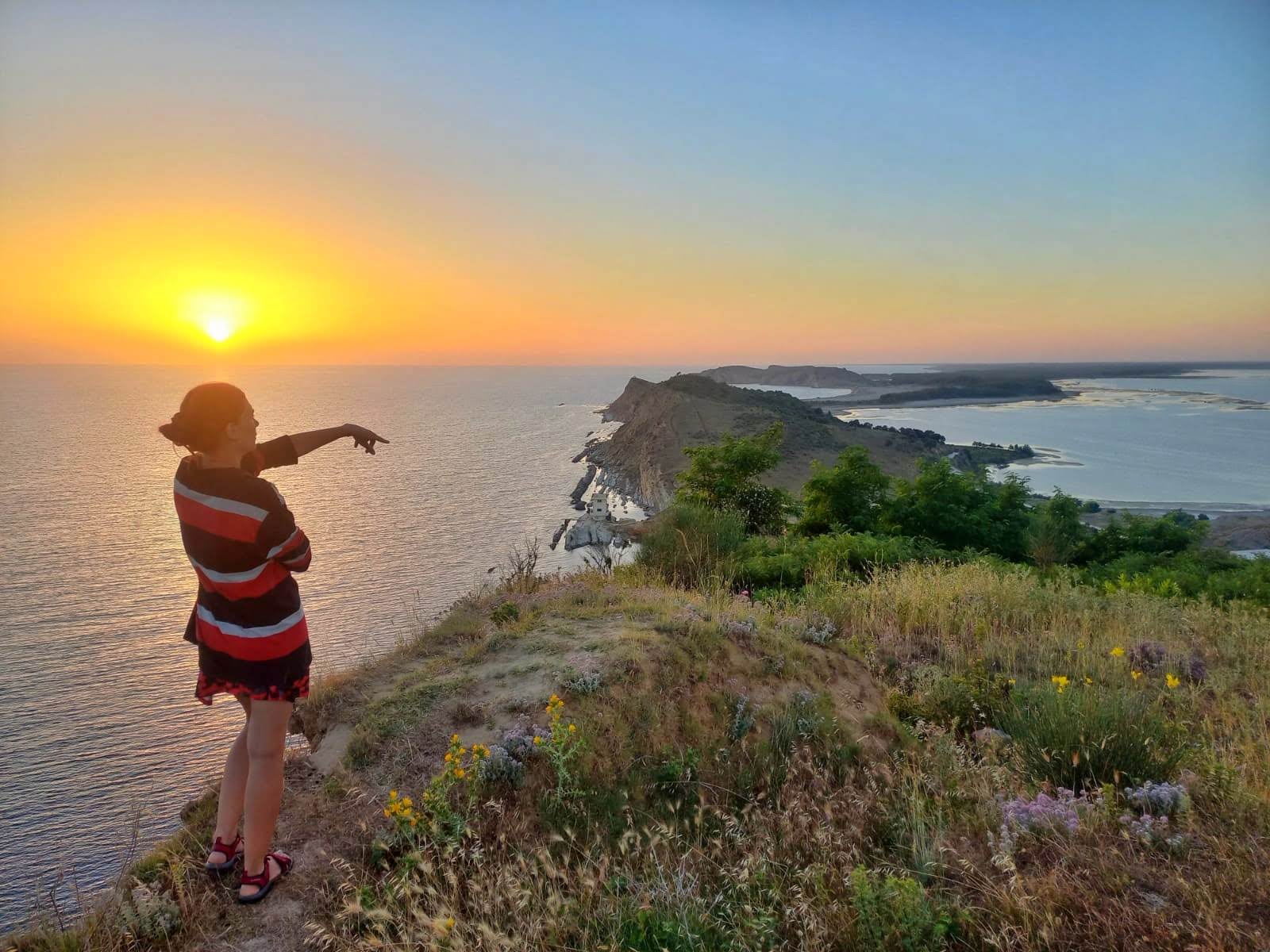 Aflată la 12 km de Vlorë (iau peste tot ca punct de plecare faleza din oraș), laguna e un paradis al păsărilor acvatice. Dar trebuie să aveți răbdare să le căutați și să faceți liniște. Noi n-am văzut aici flamingii, probabil se ascundeau, pentru că am nimerit în weekend și era lume. În schimb am văzut tot felul de peștișori, broaște, țestoase, cocostârci, șerpi și cei mai mari crabi din viața noastră, cam cât capul lui Mihai. 😂 I-am urmărit cum se băteau pentru mâncare și cum mâncau, a fost National Geographic pe viu. Am făcut și o vizită la mănăstirea de piatră, veche de vreo 10 secole, până la care am ajuns pe niște pasarele de lemn, pe piloni. Alea de apar în toate pozele cu Zvërnec 😁