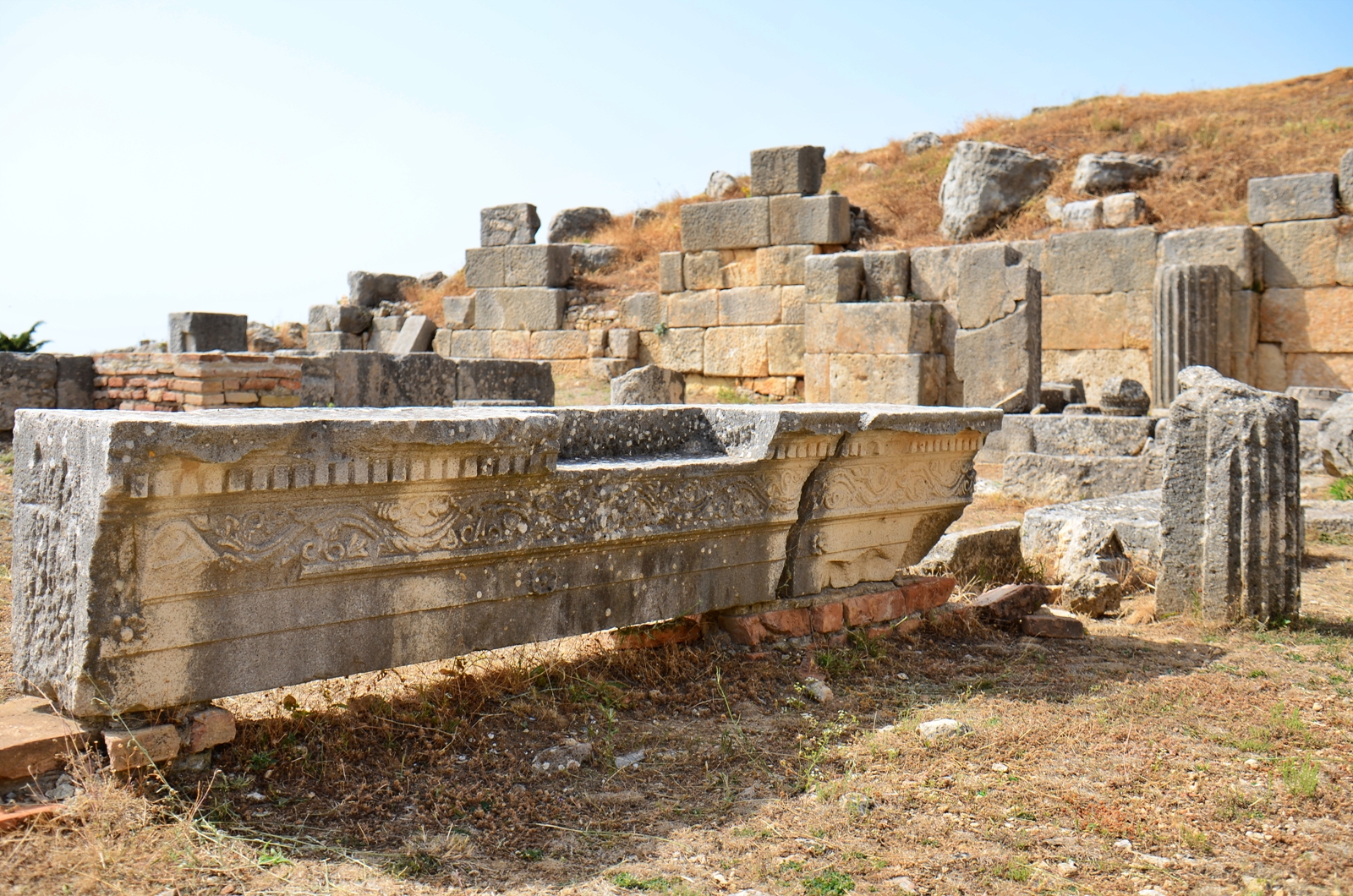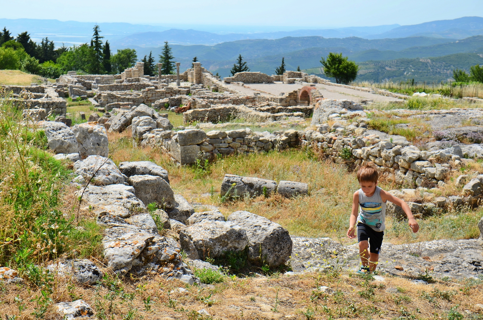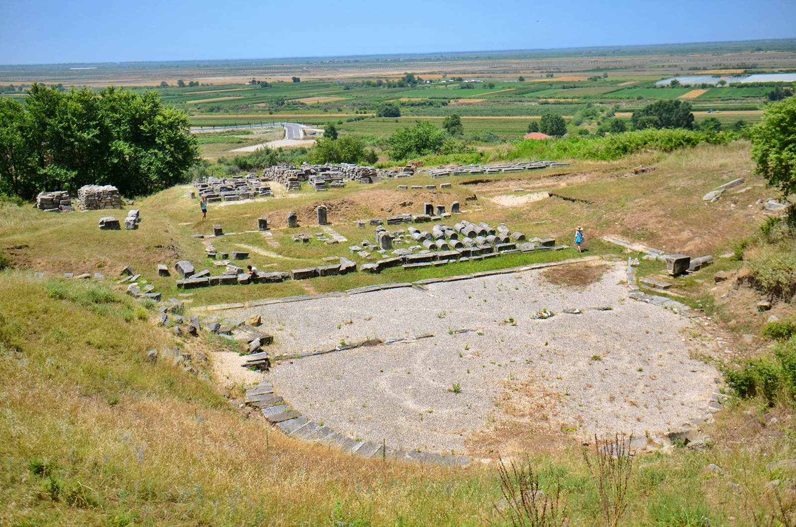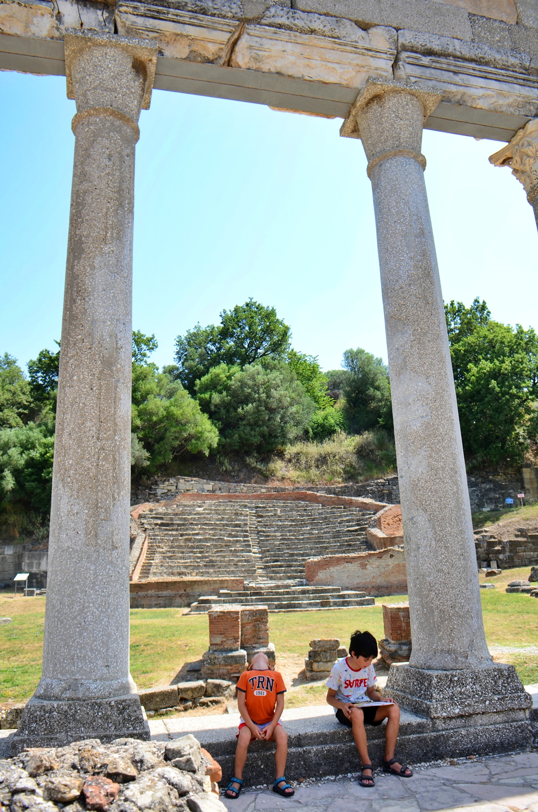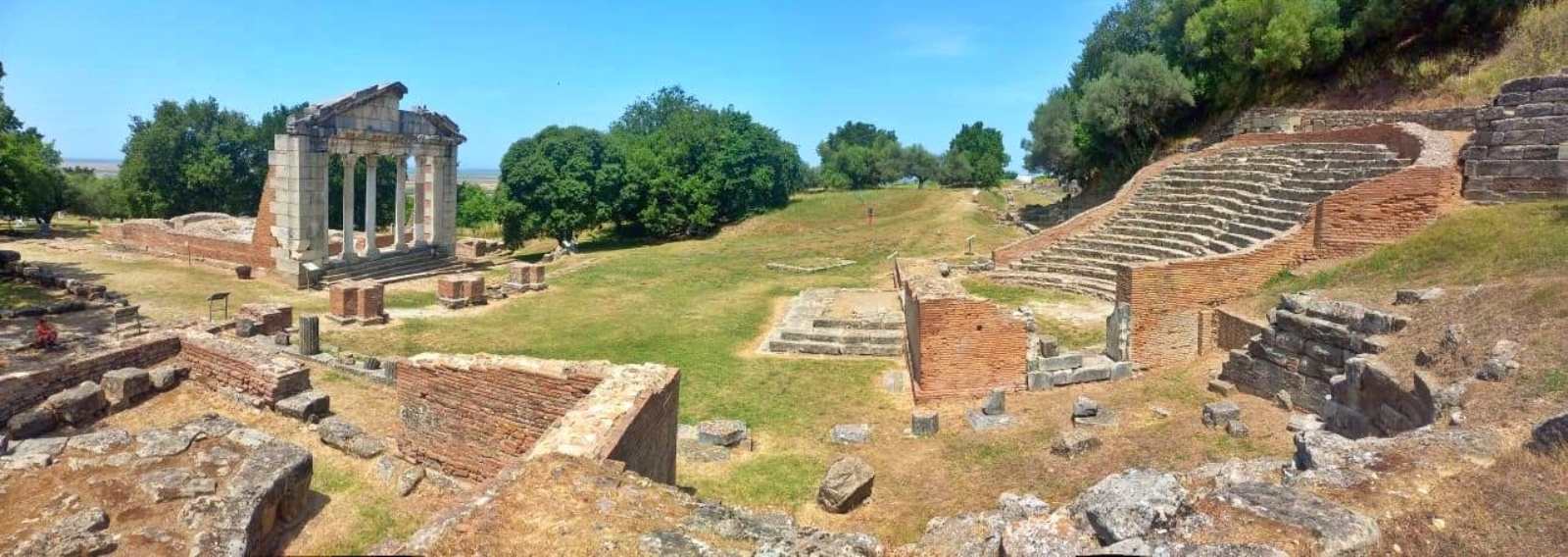 În funcție de traseul ales, până aici aveți de parcurs 63 km într-o oră sau 48 km într-o oră și jumătate 😂 Al doilea drum e mai prost, evident, nu cred că merită diferența de timp. Mai ales că primul traseu e mai spectaculos, ține malul Vjosei. Personal mi-a plăcut situl, are câteva coloane și ruine interesante, dar nu merită neapărat drumul dacă nu sunteți pasionați. În schimb, pentru cei pasionați de explorări, e un deliciu! Cel mai mult mi-a plăcut amfiteatrul, poate pentru că nu era refăcut, ci doar excavat. Iar priveliștea de sus asupra Vjosei e bestială!