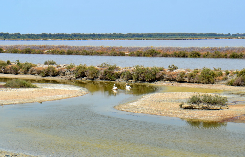 Prima dată am văzut câmpurile de sare din laguna Narta de pe autostradă. Și nu oricum, ci de un roz aprins, care ne-a atras instant. Am căutat o cale să ajungem la ele, să le vedem de mai aproape, dar din păcate accesul public nu e permis, pentru că sunt în incinta fabricii de sare. Sunt, practic, în partea opusă a lagunei față de mănăstire. Dar, chiar dacă nu ne-am putut plimba printre bazinele roz, am făcut o plimbare prin lagună, am cules scoici și am admirat sute de păsări de apă, inclusiv pelicani și flamingo. Merită o după-masă aici 🙂
