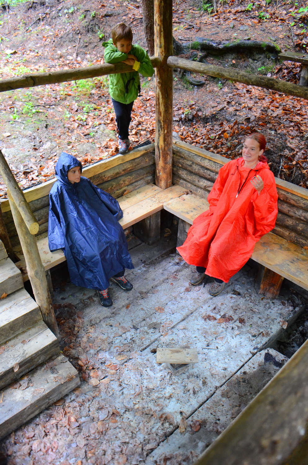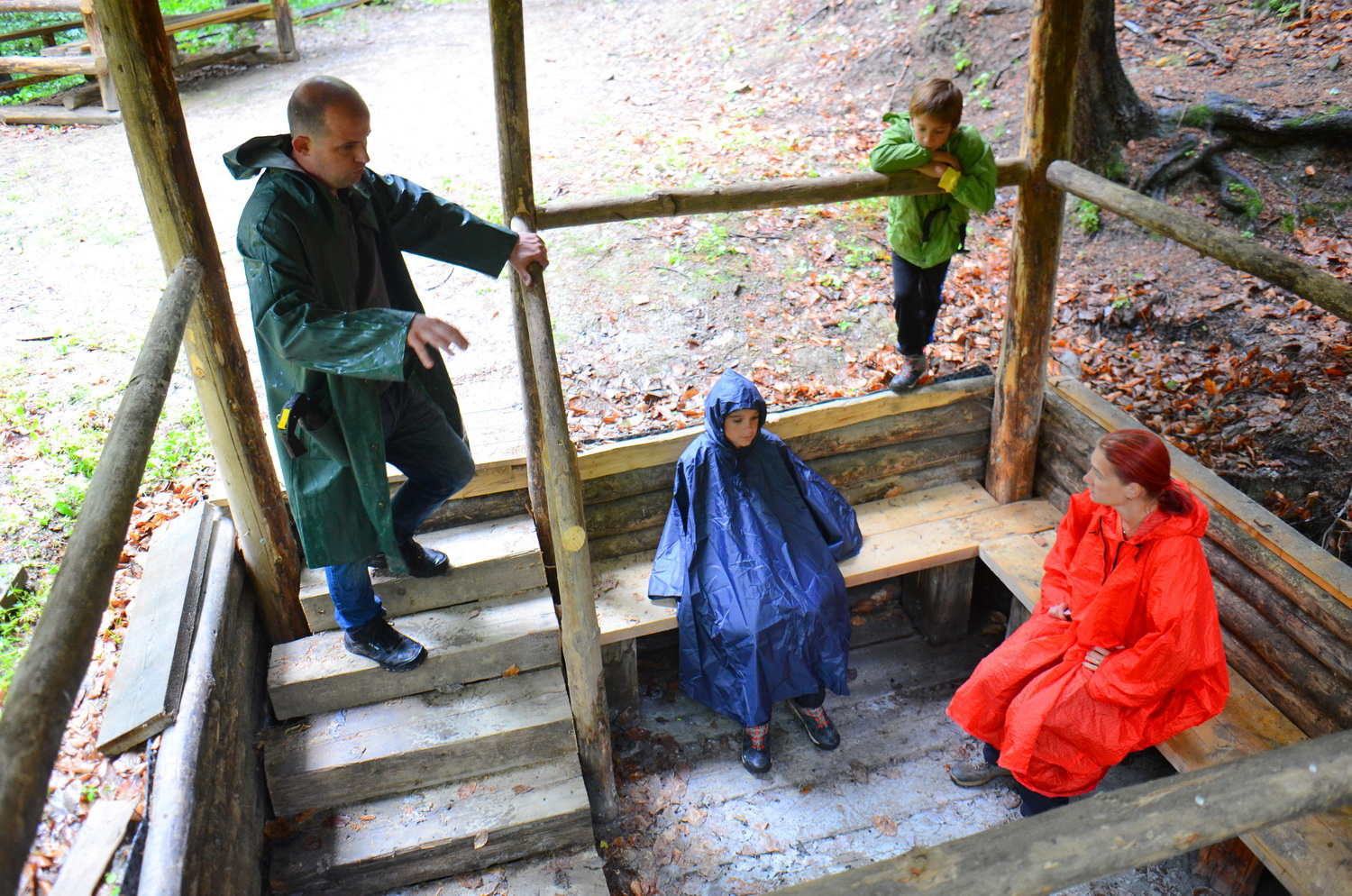 Aici e o mofetă amenajată pentru tratament, dar e închisă, se poate merge doar cu programare. Așa că noi urcăm vreo 5 minute în pădure, spre o mofetă în aer liber. Nu pare cine știe ce când ajungem la ea, adică vedem un foișor și atât. Leonard ne încurajează să coborâm în ea, dar să nu ne lăsăm jos, că rămânem fără aer. Noi normal că încercăm 😂 Și dăm de cea mai ciudată senzație ever! Dacă ne lăsăm cu capul mai jos de brâu, pur și simplu nu mai putem respira! Parcă e o barieră invizibilă dincolo de care nu mai e aer… Cristi încearcă să vadă ce se întâmplă dacă nu trage aer deloc. Se lasă jos și imediat îl ustură ochii și simte presiune pe gât și piept. Foarte tare senzația! Dacă n-ați fost niciodată la o mofetă, vă recomand să mergeți aici, să vedeți ce interesant e!