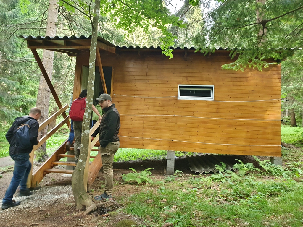 Noi ne-am întâlnit la ora 18:00 lângă Băile Tușnad. La observatoare, urșii pot fi văzuți cel mai sigur înainte de apus, când vin să se hrănească. Am lăsat mașina lângă șosea și am fost preluați cu mașinile de teren ale ghizilor, care ne-au dus până lângă observator. Ultimii 300 m i-am parcurs pe jos, în liniște, ca să nu deranjăm urșii.