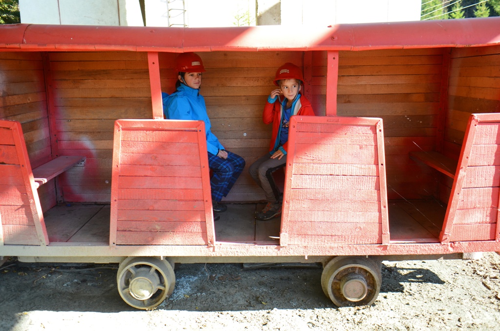 Noi am mers cu mașina, dar este și un traseu turistic marcat, care pleacă fix de vizavi de biserica din Ciocănești. Ghidul nostru a fost chiar domnul primar al comunei Ciocănești, Radu Ciocan, care a lucrat ca miner aici. Ne-a echipat corespunzător și ne-a dus apoi în adâncurile pământului, unde ne-a povestit și ne-a arătat cum se exploata manganul, cum era transportat cu vagonetele și încărcat apoi în camioane. Am văzut chiar și trenul cu care erau duși minerii în mină. A fost o experiență foarte interesantă pentru noi, ăștia normali. Dar pentru Alex a fost un vis împlinit, toată ziua ne-a vorbit apoi doar de asta! Dacă vreți să vizitați mina Oița, trebuie să știți că se vizitează doar în grupuri și trebuie făcută programare în prealabil. Pentru asta, luați legătura cu cei de la Țara Dornelor.