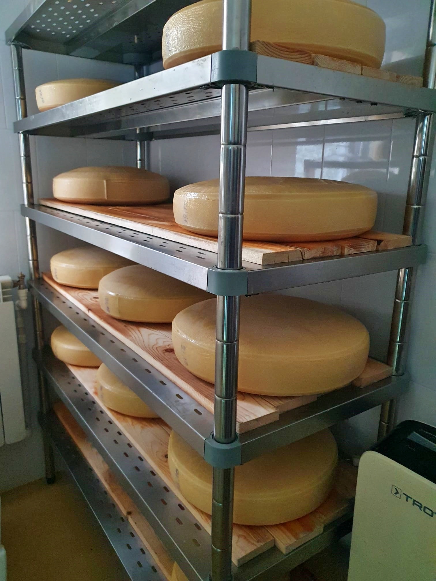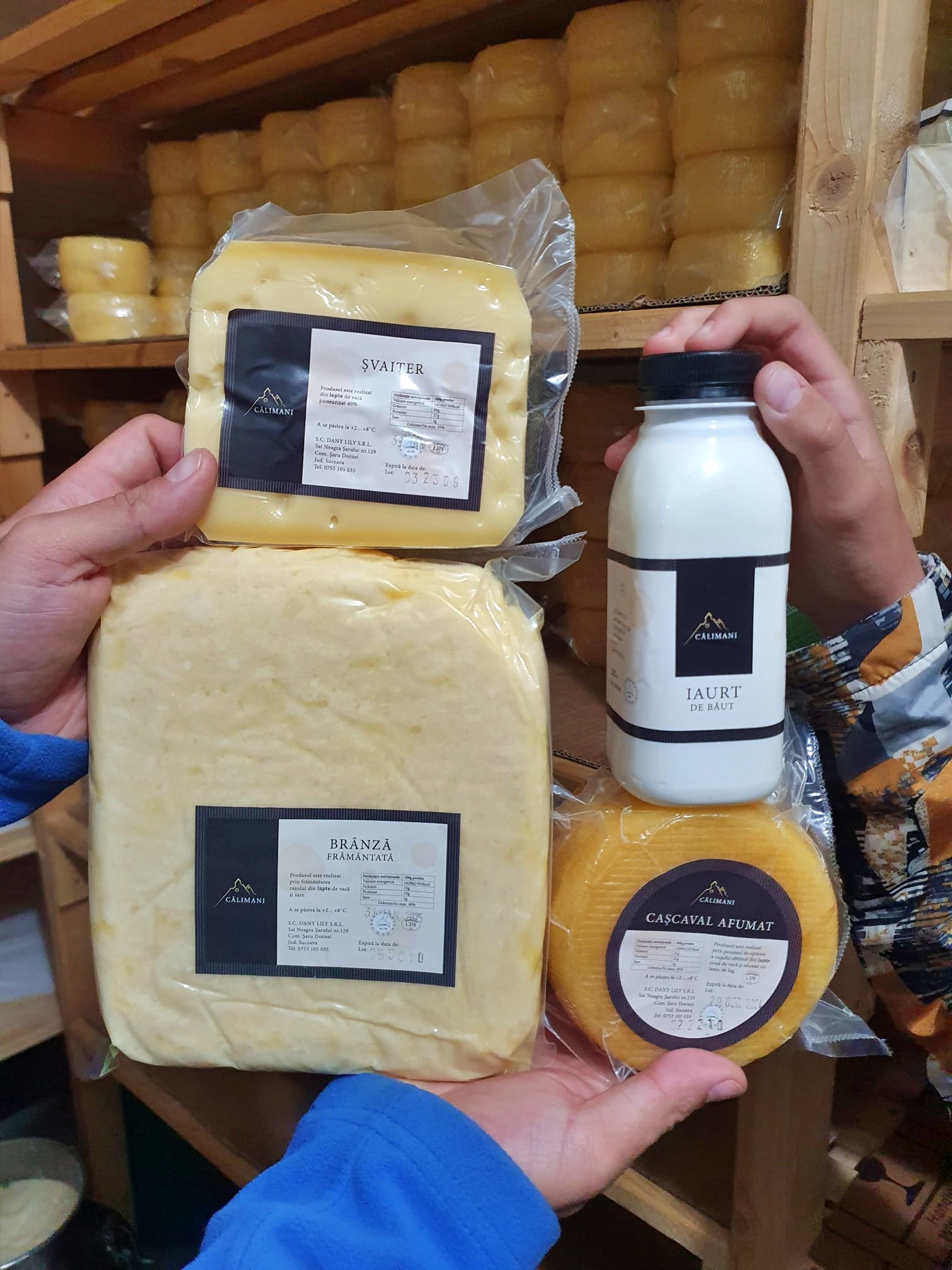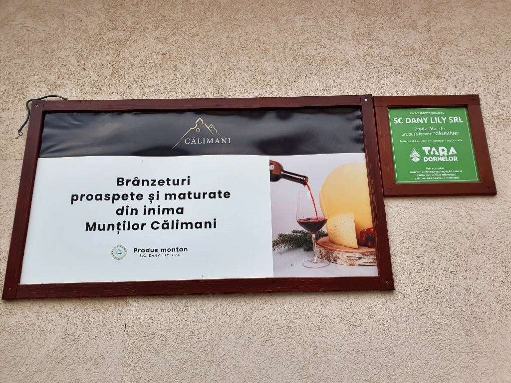 Am găsit aici singurul producător din România care produce șvaițer după rețeta originală, fără niciun adaos. Acest producător e firma Lactate Călimani, afacerea familiei Crucianu, care are o făbricuță în Șaru Dornei, pe care am avut norocul să o putem vizita. Am ajuns în weekend și nu se lucra, dar domnul Adrian Crucianu ne-a povestit tot procesul, de la mulsul vacilor și colectatul laptelui, până la maturare și ambalare. Ei fac absolut tot, în fabrica proprie. Șvaițerul produs de ei respectă metodele elvețiene clasice, care implică o maturare îndelungată (de până la câteva luni), ceea ce îi oferă gustul distinct. În plus, pe lângă șvaițer, mai au și alte produse montane atestate și certificate: cașcaval, brânză frământată, telemea de vacă și cașcaval afumat, dar și produse din carne de vită, pasăre, porc sau ouă, toate obținute de ei în gospodăria proprie. Și vă puteți bucura de toate first hand dacă vă cazați la Pensiunea Agroturistică Elena, despre care am scris în acest articol.