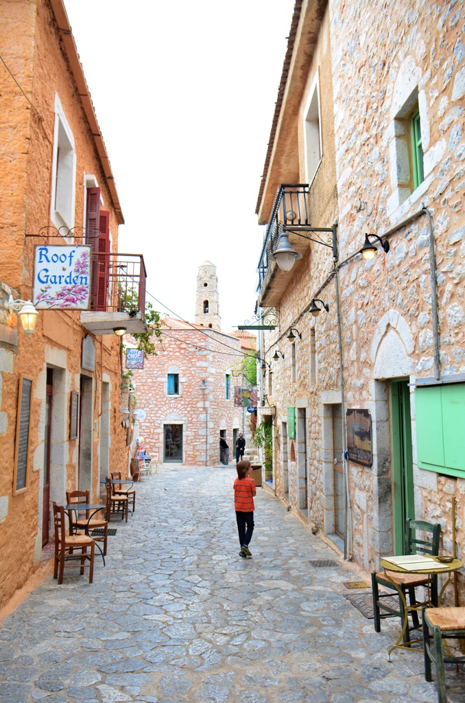 Deși sătucul e frumos, noi am apucat să vizităm doar vechea cetate a familiei Mourtzinos. Cetatea e restaurată, iar în interior e amenajat un muzeu foarte interesant, unde am aflat despre modul de viață al familiilor de războinici manioți. Iar biserica Agios Spyridon, din secolul XVII, cu clopotnița sa frumoasă și picturile bizantine, ne-a impresionat prin simplitatea și rafinamentul ei.