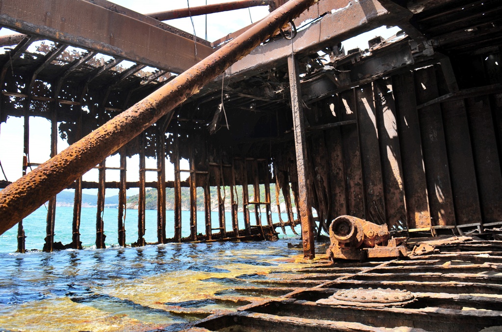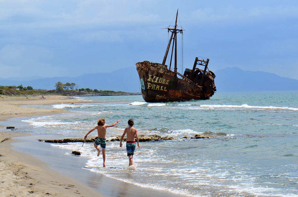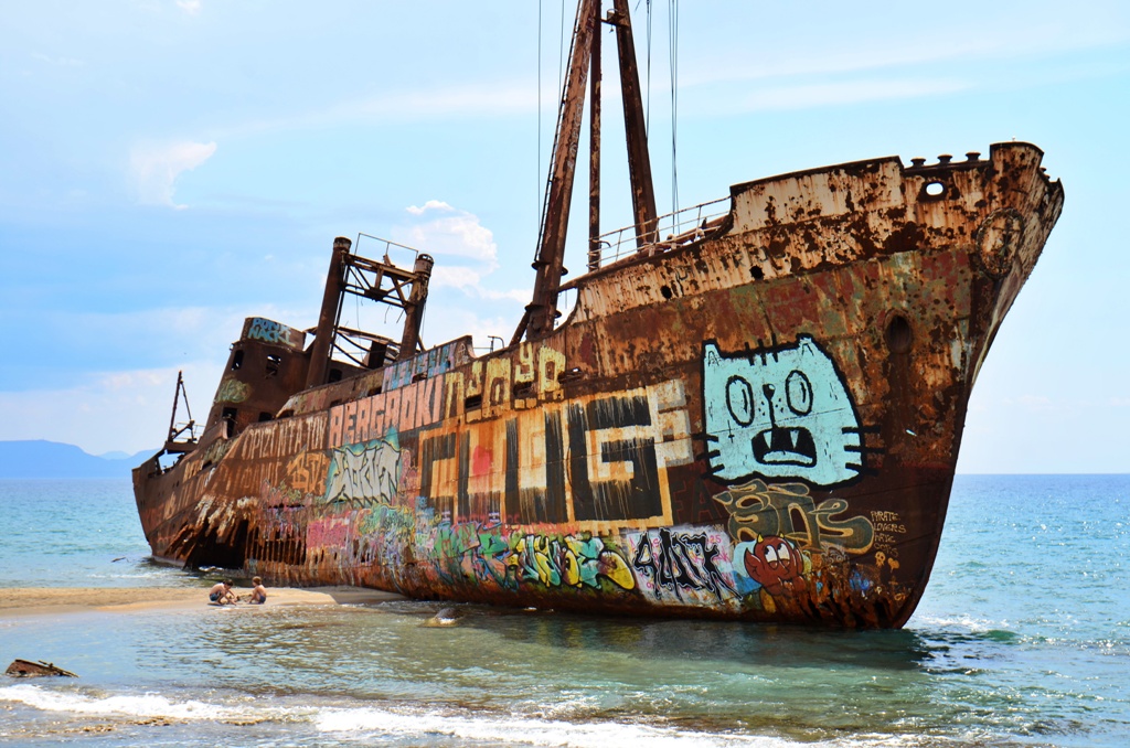 Eșuată pe o plajă de lângă Gythio, epava Dimitrios sare în ochi de la distanță. E ruginită, mâncată de sare și de valuri, dar încă impunătoare. Se spune că a fost abandonată de echipaj în anii ’80, în condiții încă neclare. Unele voci vorbesc despre contrabandă, altele despre lipsă de fonduri pentru reparații.