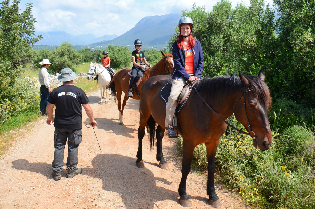 Un mod inedit de a descoperi regiunea e din șaua calului. Iar cu asta te ajută Mani Horses, o fermă de cai din regiune. Noi am făcut un tur printr-o plantație de măslini și prin satul Charia – o splendoare să te plimbi călare pe străduțele de piatră!