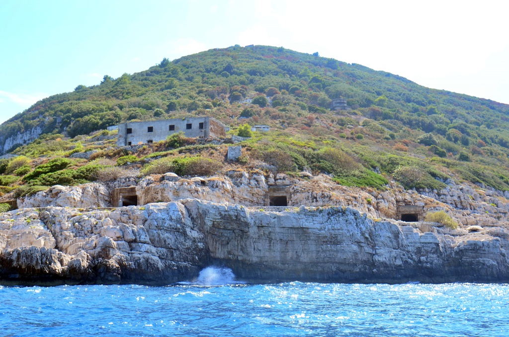 Mai departe am pornit spre insula Sazan, fost punct strategic militar în perioada comunistă, împânzită cu buncăre. Imaginea de pe mare e absolut spectaculoasă, cu buncărele care se văd îngrămădite în versant. Alex a fost în culmea fericirii și s-a pus să le numere pe toate. Vă spun că nu-i ușor, când sunt cu sutele pe fiecare parte!
