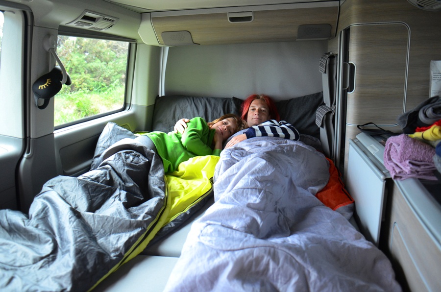 În multe parcări liniștite, lay-bys, viewpoint-uri și zone de wild camping permise. Sau în camping.