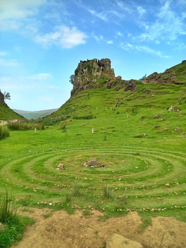 Am dormit pe plaja An Corran, de unde am pornit dimineața spre Skye Museum of Island Life. Pe drum am dat peste o căsuță tradițională, unde o doamnă foarte drăguță ne-a primit înăuntru și ne-a povestit despre cum trăiau vechii celți. De aici am mers direct spre Fairy Glen. Plimbarea printre formațiunile vulcanice nu e lungă, dar merită. Zona e absolut magică.