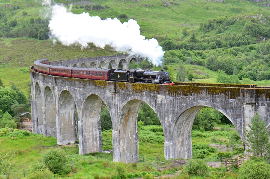 Dimineața am pornit devreme spre celebrul viaduct Glenfinnan, să prindem trenul care trece pe el. Nu ne-am oprit doar pentru poze, am mers de-a lungul căii ferate ca să-l vedem din mai multe unghiuri, inclusiv în gara Glenfinnan.