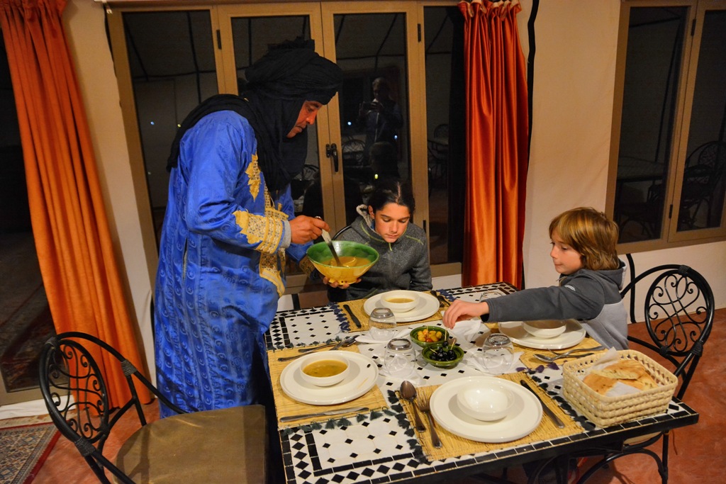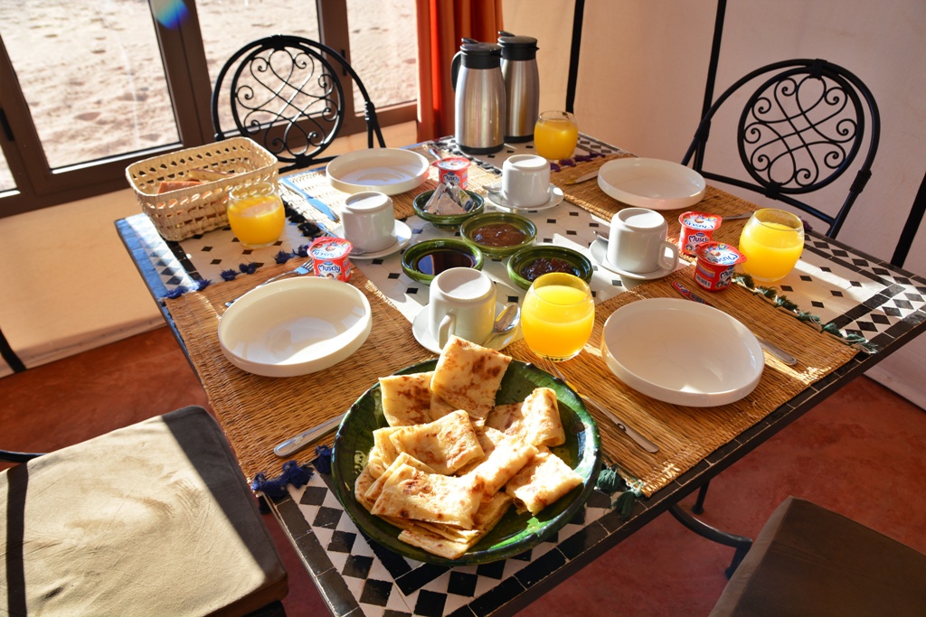 Când vii la Arawan Luxury Desert Camp nu trebuie să-ți faci griji pentru mâncare. Salem și echipa lui te hrănesc bine, tradițional și delicios. Nu cred că trebuie să menționez că sunt incluse toate cele trei mese. Nu prea ai unde să mergi la restaurant să mănânci :)) Dar nici nu e nevoie, pentru că Salem îți pregătește preparate marocane, proaspete și gustoase.