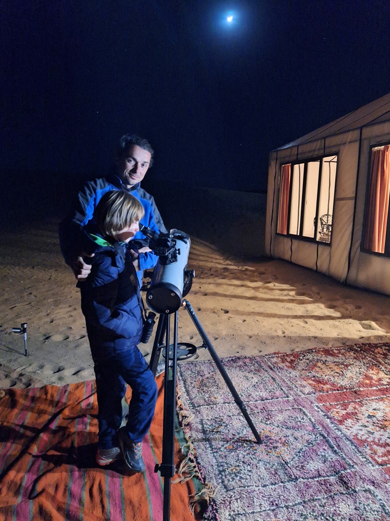La lăsarea serii am scos telescopul, cu care am reușit să vedem foarte bine craterele de pe Lună, dar și chestii mai interesante, cum ar fi Centura lui Orion cu nebuloasa, Sirius, Jupiter cu toți cei patru sateliți și Pleiadele. În deșert, departe de poluare luminoasă, cerul chiar arată altfel.